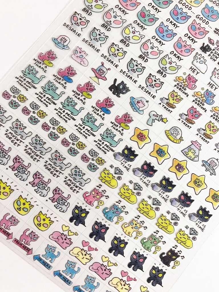 This 7 x 5 inch sticker sheet has 140 stickers! Each square is half an inch big, and works beautifully on all colors of paper. The designs are opaque, and the background of the sticker is transparent.