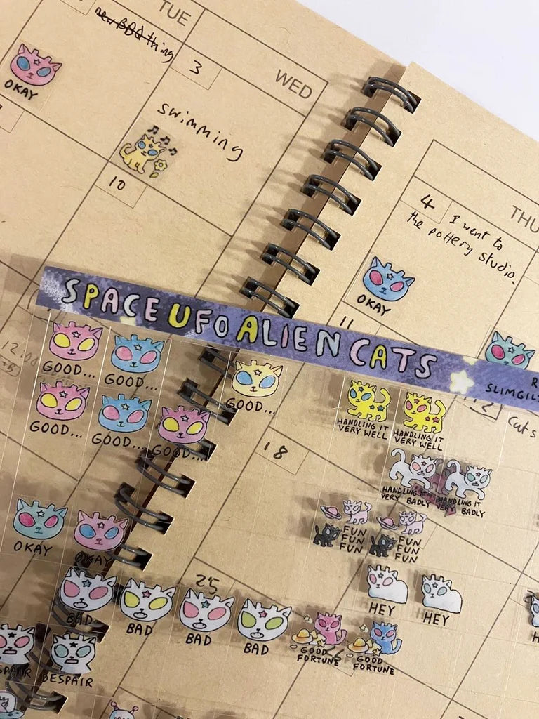 Due to popular demand, space UFO alien cats can now decorate your Schedule, Journal or Diary!